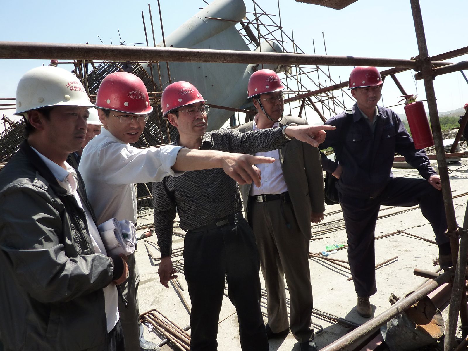 公司董事长现场指导乌鲁木齐河特大桥128m简支系杆拱拱脚施工