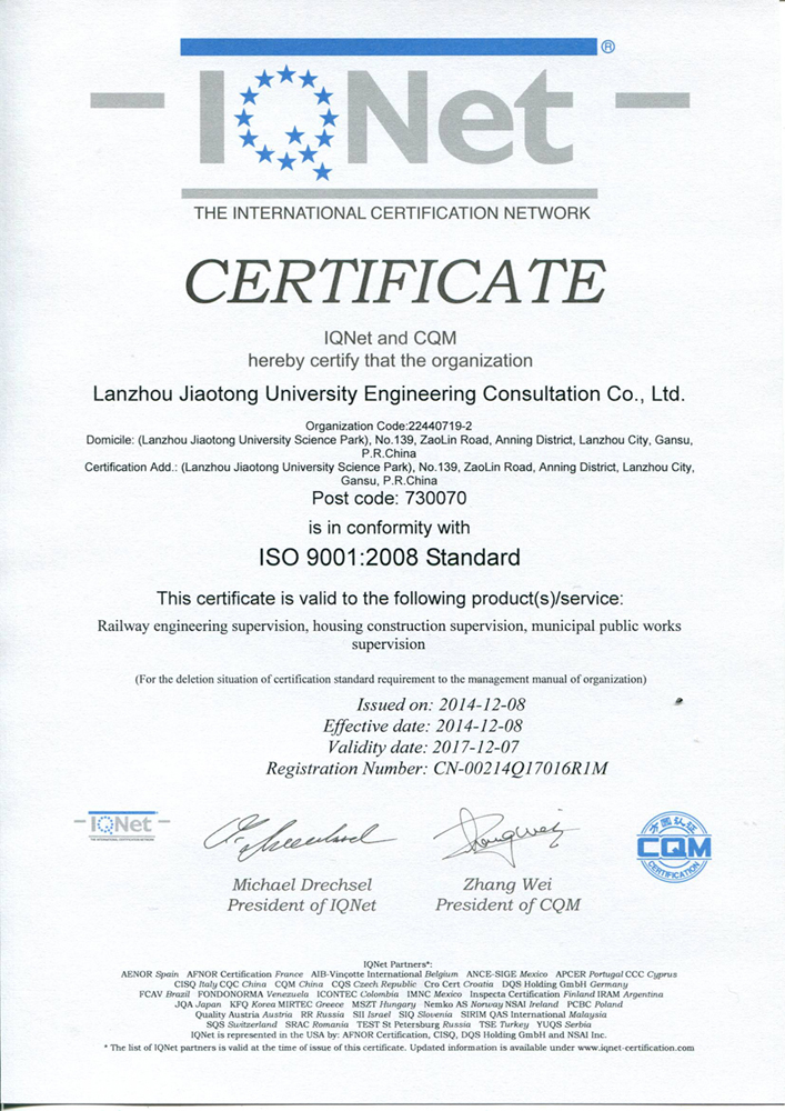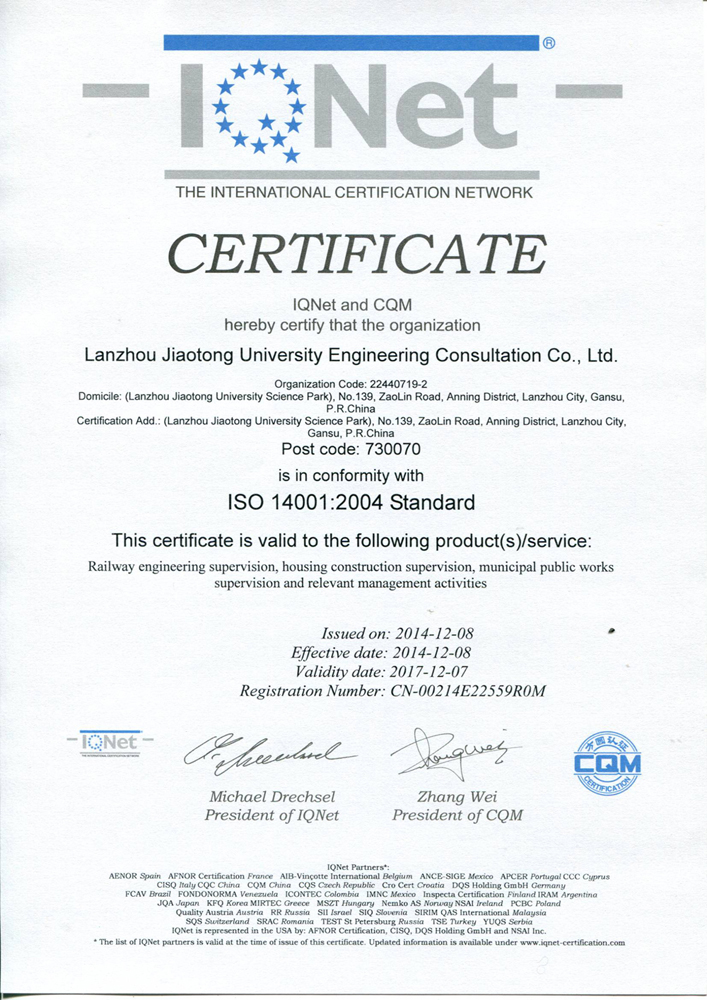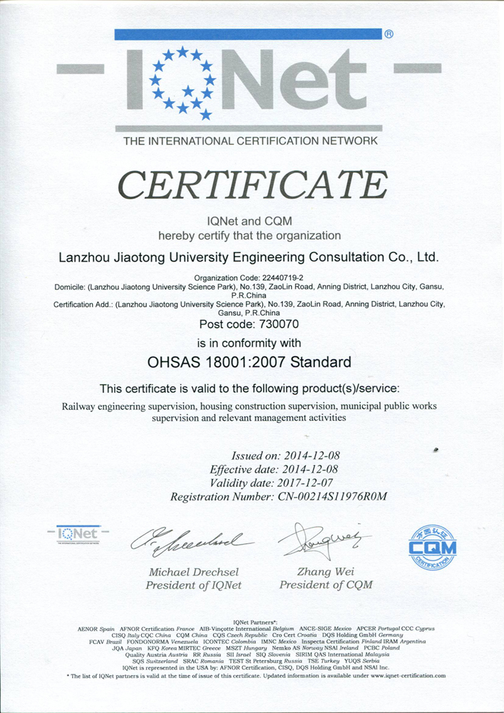 我公司顺利通过质量、环境、职业健康安全管理体系认证审核,并于2014年12月8日获得方圆标志认证集团颁发的ISO 9001质量管理体系、ISO 14001环境管理体系以及OHSAS 18001职业健康安全管理体系认证证书。
