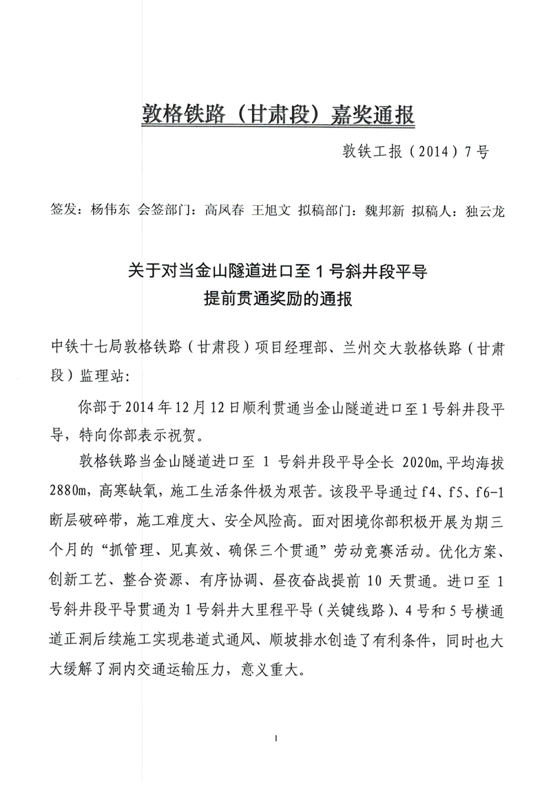 我公司敦格铁路监理站获敦煌铁路有限责任公司嘉奖通报