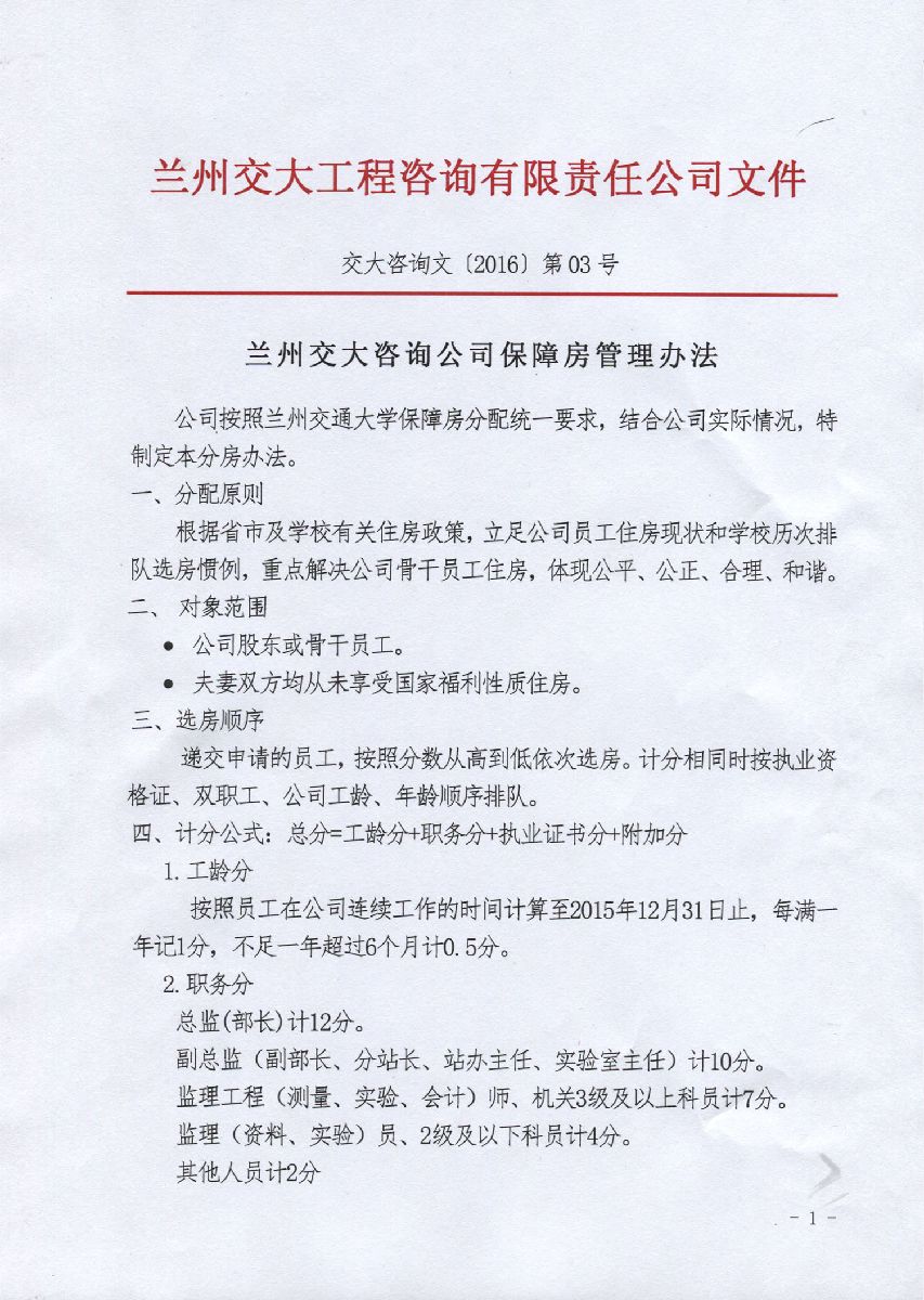 交大咨询文[2016]第03号 兰州交大咨询公司保障房管理办法