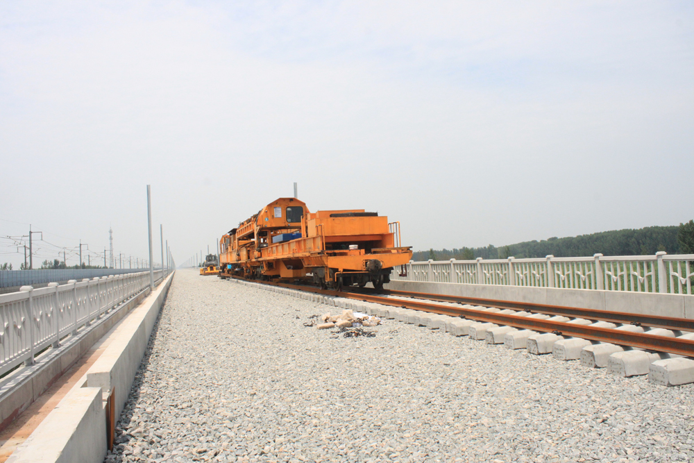 按照石济公司下达的铺轨计划,山东段7月15日开启铺轨,并以每天2公里的速度迅速向北挺进,左线将于8月5日到达石济客专禹城东站,其中我项目管段24.7公里。我监理部承担了31.226km范围正、站线铺碴、整道、精调工程施工。