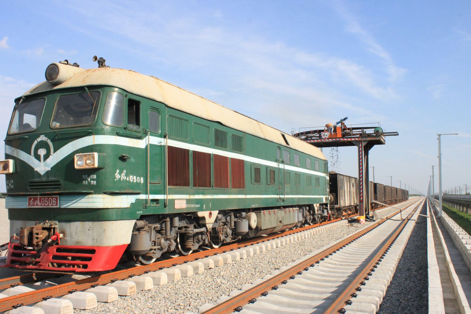 8月29日13:30一列风动卸砟车缓缓停在石济客7标架梁项目部输送机下开始装砟,标志着石济客专7标全面开始面砟施工。