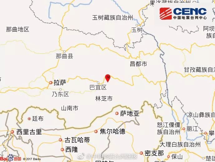 据中国地震台网测定,北京时间11月18日6时34分,在西藏林芝市米林县(北纬29.75度,东经95.02度)发生6.9级地震,震源深度约10公里。