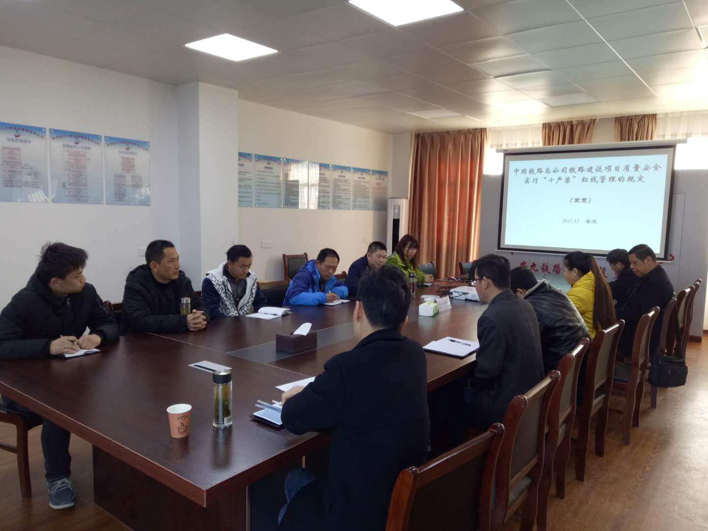 12月24日,安九监理站举行宣贯铁路总公司质量安全“十严禁”红线管理等4个管理办法动员会,全面落实铁路总公司铁路建设项目质量安全实行“十严禁”红线管理等4个管理办法的规定。