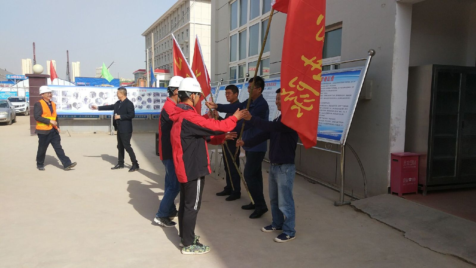 会上,我单位总监明确表示:我们坚持最高标准、坚持最严要求,通过规范化的工作方法和抓源头、抓过程、抓细节的工作作风,确保车辆段扩能改造工程节点工期按期兑现,工程质量安全有序可控。活动中,与会领导为施工中涌现出来的三支突击队授旗,突击队代表进行施工宣誓。最后,项目经理分别与各施工队伍签定施工质量承诺书。