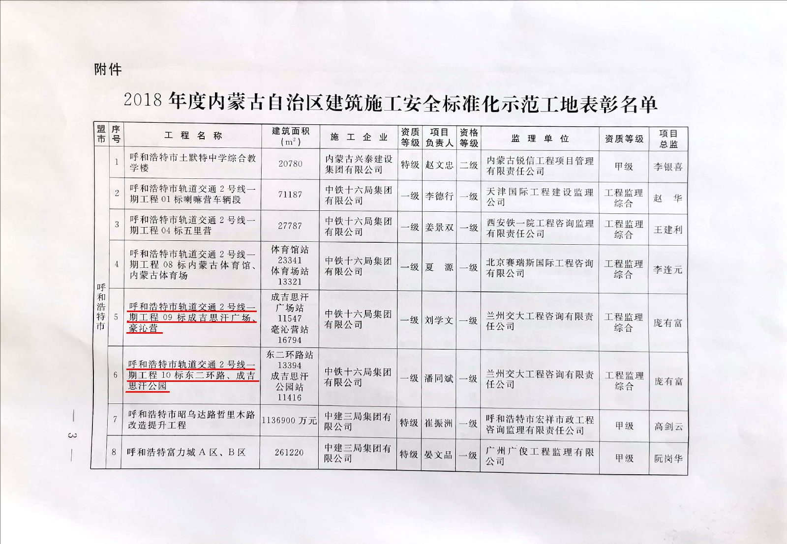 5月28日,大同分公司呼市地铁2号线监理五标项目部参加了“内蒙古自治区建筑施工安全标准化示范工地表彰大会”,我部监理的呼市地铁2号线一期工程四个车站项目同时获得“2018年度内蒙古自治区建筑施工安全标准化示范工地”荣誉证书。继一家村站项目获得“2017年度建筑施工安全标准化示范工地”后,呼市地铁2号线监理五标管辖范围内的五个车站(成吉思汗广场站、毫沁营站、成吉思汗公园站、一家村站以及东二环路站)全部获此殊荣。这是一份肯定、更是一份激励!