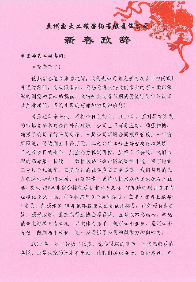 2020年董事长新春致辞