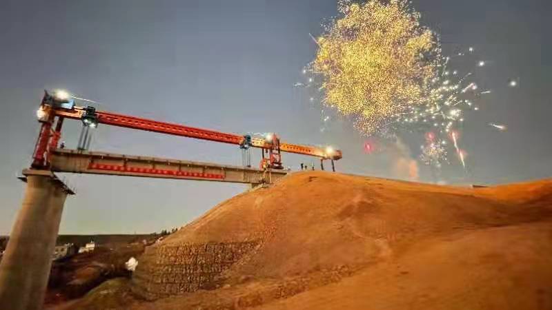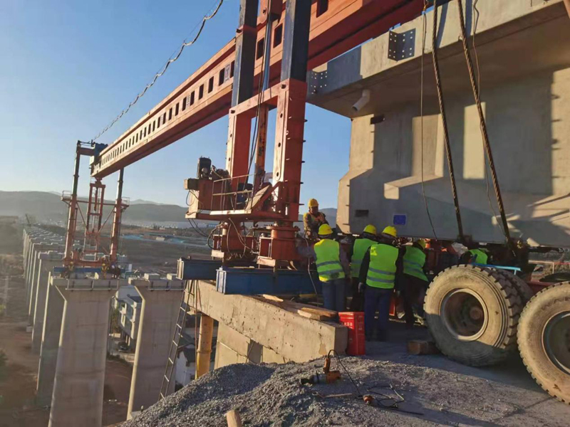祥云财富工业园区新建铁路专用线工程全线第一片简支T梁顺利架设成功