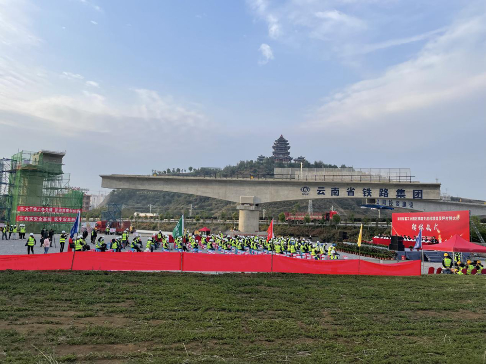 祥云财富工业园区新建铁路专用线茨坪村特大桥21#墩转体顺利完成