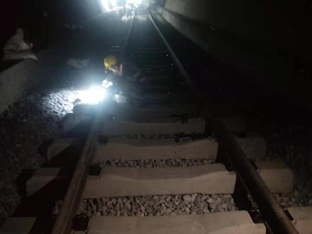 2022年4月25日由我公司监理的祥云财富工业园区新建铁路专用线从石头坡山隧道进口开始全线进入正式铺轨施工。全线采用标准P50轨,长度25m;轨枕采用新Ⅱ型砼枕;道砟采用一级碎石道砟。