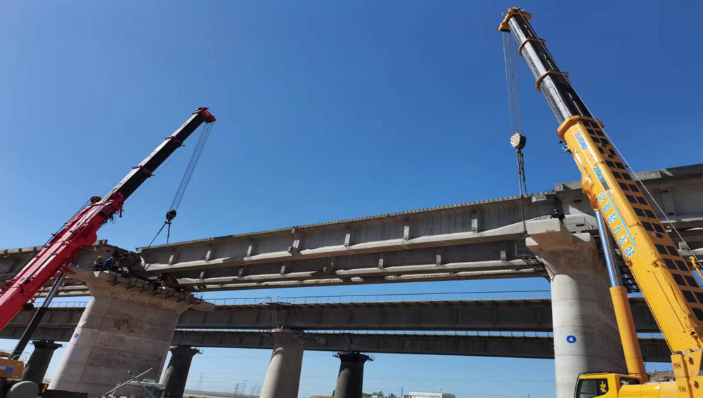 国道307线甜水河至灵武公路与宁东铁路大枣线交叉工程南沟大桥桥梁架设顺利完成