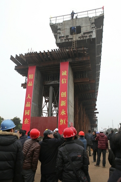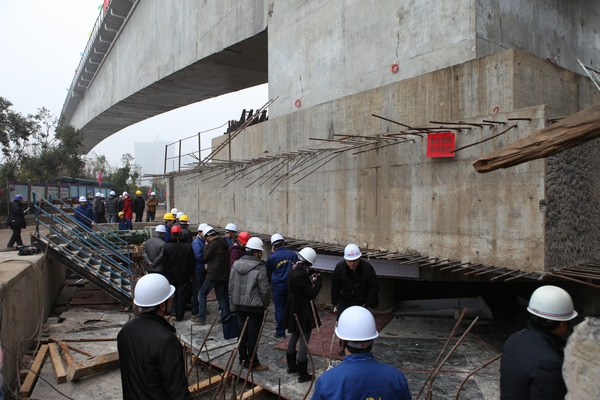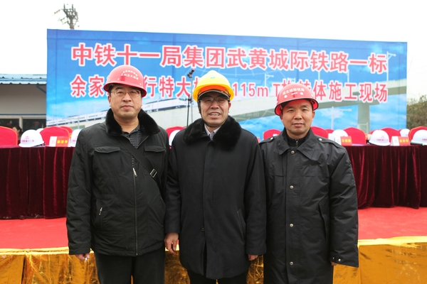 2012年12月28日14时15分,武汉至黄石城际铁路余家湾上行特大桥转体梁(亚洲最大的转体梁)成功完成转体,顿时施工现场鞭炮齐鸣,上千名工程参建人员、专家和当地群众驻足欢呼,共同庆贺这一历史性的胜利!公司董事长刘凤奎教授亲临现场观摩了T型刚构的转体过程。