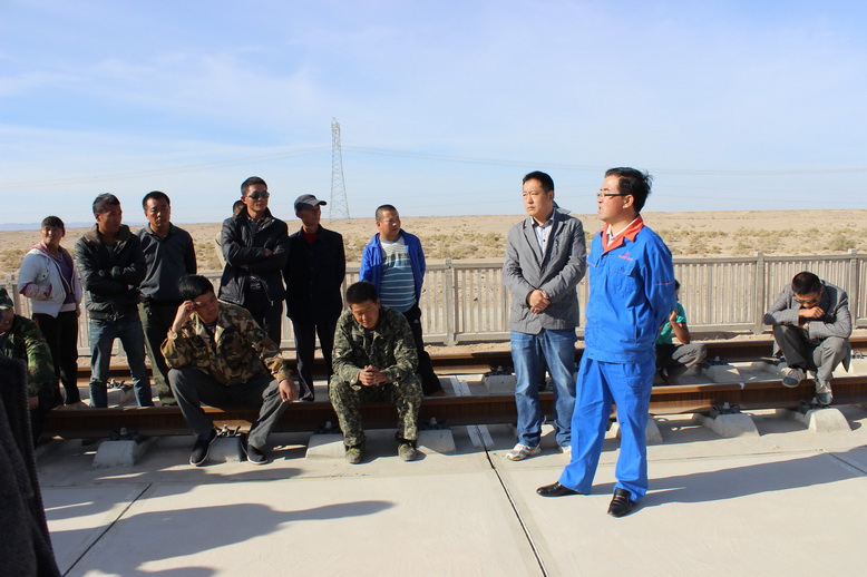 2013年9月15日上午,兰州交大咨询公司兰新铁路甘青段监理站在DK1097-DK1098段组织召开17标嵌缝胶施工现场观摩会,中铁十七局项目部有关领导、各分部经理、总工、工程、技术、安质部长、参与嵌缝胶施工的所有作业工班长以及监理各分站长、现场专监近60人到会参加了现场观摩。